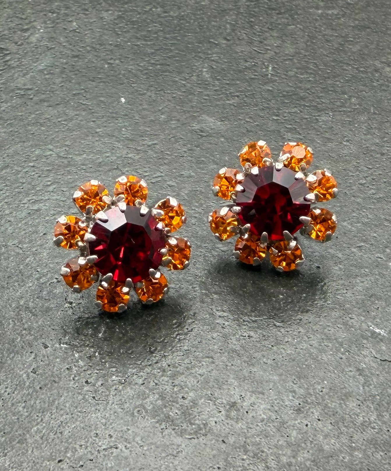 【ドイツ買付】ヴィンテージ SEIBOTH ガーネット タンジェリン フラワー ピアス/Vintage SEIBOTH Garnet Tangerine Flower Post Earrings