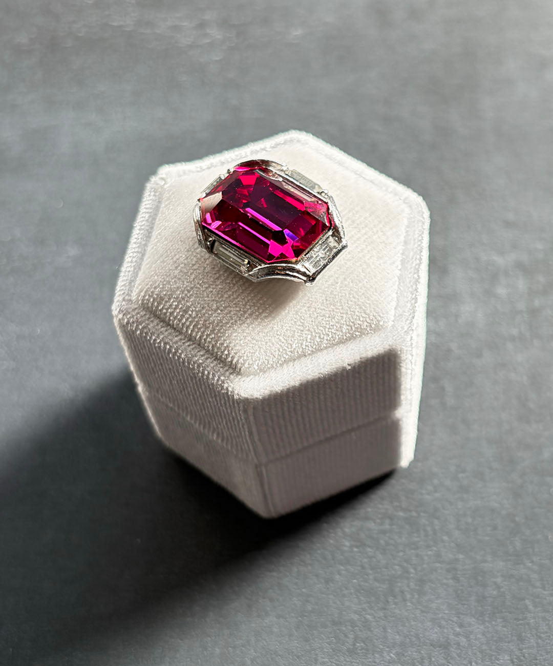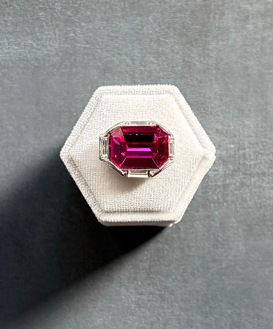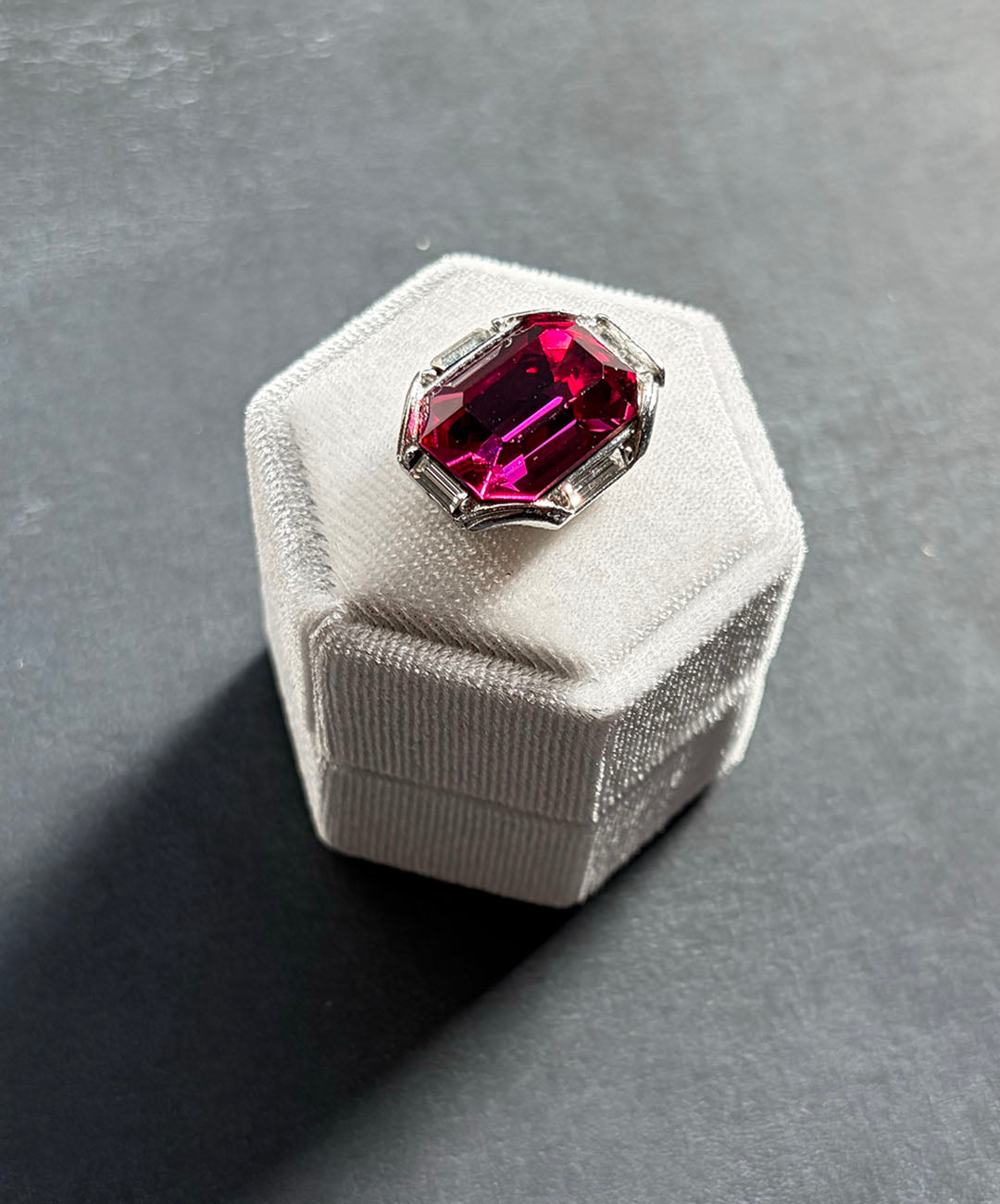 鮮やかで深みのあるマゼンタ×クリスタルの輝きと、気品あるデザインが素敵です。