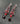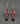 ユニークなシェイプのシルバートーンメタルに、ガーネットレッドのラインストーン、コーラルレッドのカボション、ファイアーレッドの大粒ガラスがセットされており、先端には黒を帯びたダークレッドのファセットガラスビーズが垂れ下がり揺れます。