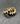 厚みのあるゴールドトーンメタルのフープにユニークな模様が施され、ブラックとクリームホワイトのエナメルで彩られています。