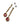 ガーネットレッドのラウンドストーンがセットされたゴールドトーンチェーンが垂れ、先端にはレッドの大粒ペアシェイプストーンが揺れるデザイン。