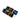 ゴールドトーンメタルに、フォレストグリーン、ダークなコニャックブラウン、サファイアブルーのスクエアストーンが二列に爪留めされたお品。