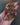 ブルーの内部でグリーンやイエローが混じり合うギブレガラス、トパーズオレンジ、ダークブラウンやシャンパンのガラスが一石一石爪留めされ、ペイズリーのようなモチーフを形作っています。