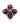 王冠を思わせるシンメトリーで重厚感のあるダークトーンメタルに、ストロベリーレッドのルーサイト、ピーコックブルーとクリアのラインストーンがセットされています。