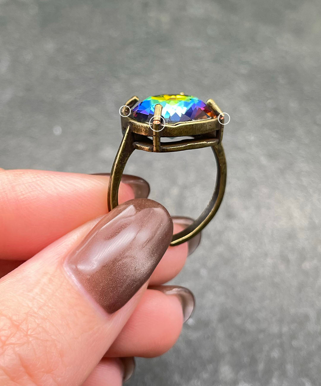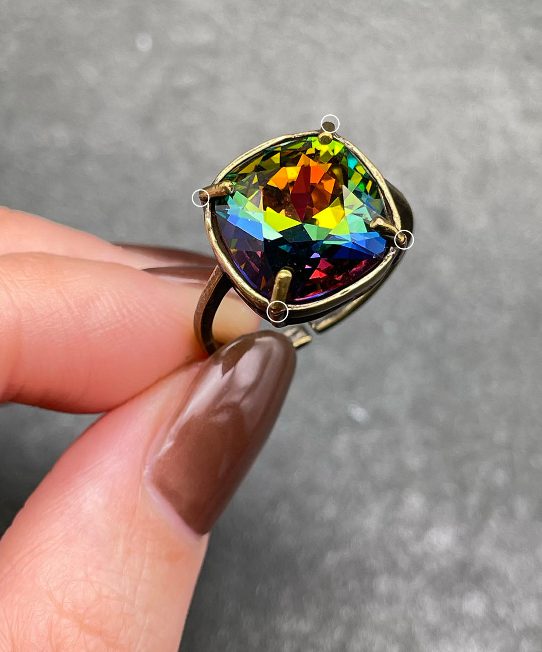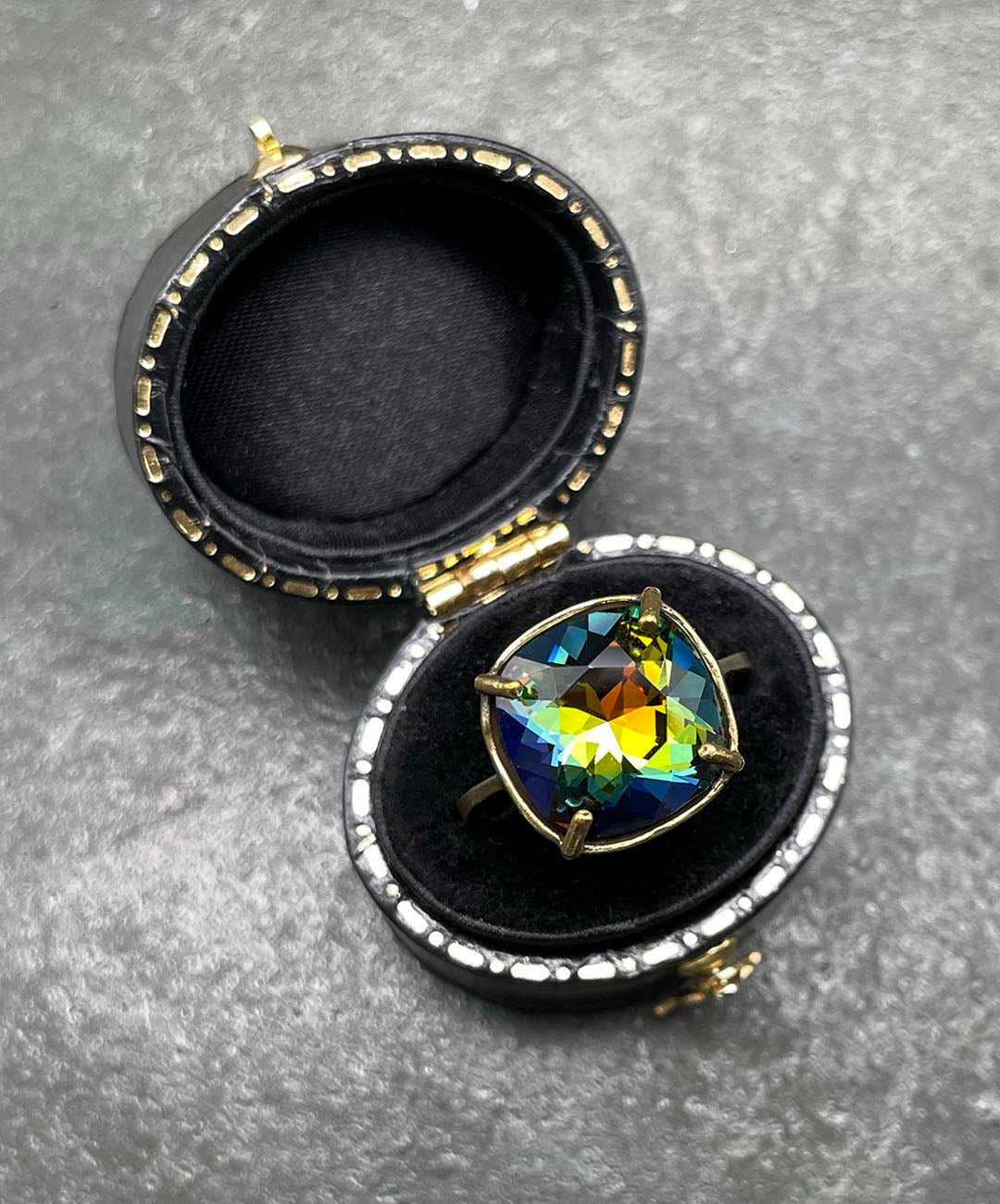 2021年に一般向けのDIY事業から撤退したSwarovski社。今回、アメリカのサプライヤーを通じて、希少となったデッドストックの中から、一点一点こだわってクリスタルを選び集め、オリジナルリングを制作しました。