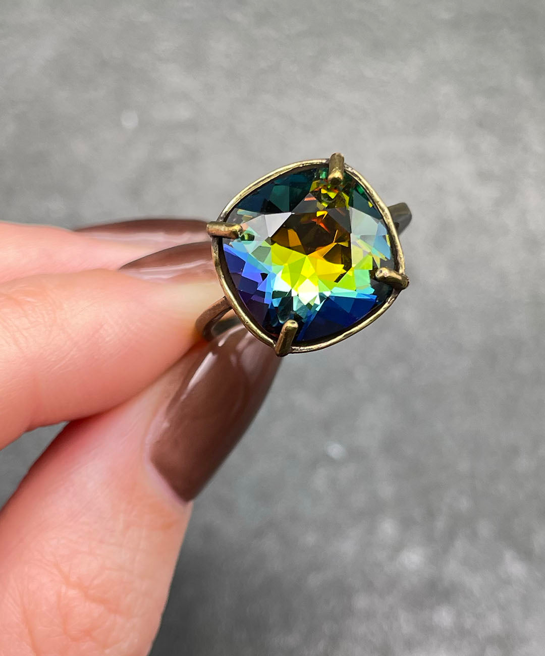 デッドストックのスワロフスキークリスタルで制作した、Elysa Jewelryオリジナルのリング。