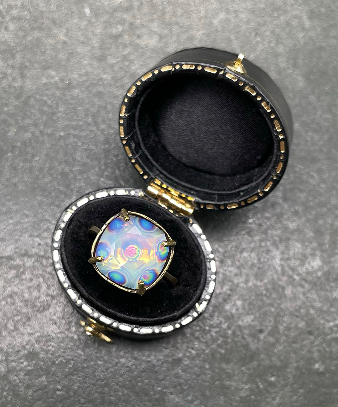 2021年に一般向けのDIY事業から撤退したSwarovski社。今回、アメリカのサプライヤーを通じて、希少となったデッドストックの中から、一点一点こだわってクリスタルを選び集め、オリジナルリングを制作しました。