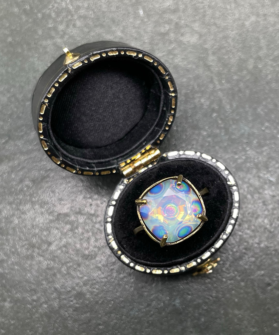 デッドストックのスワロフスキークリスタルで制作した、Elysa Jewelryオリジナルのリング。