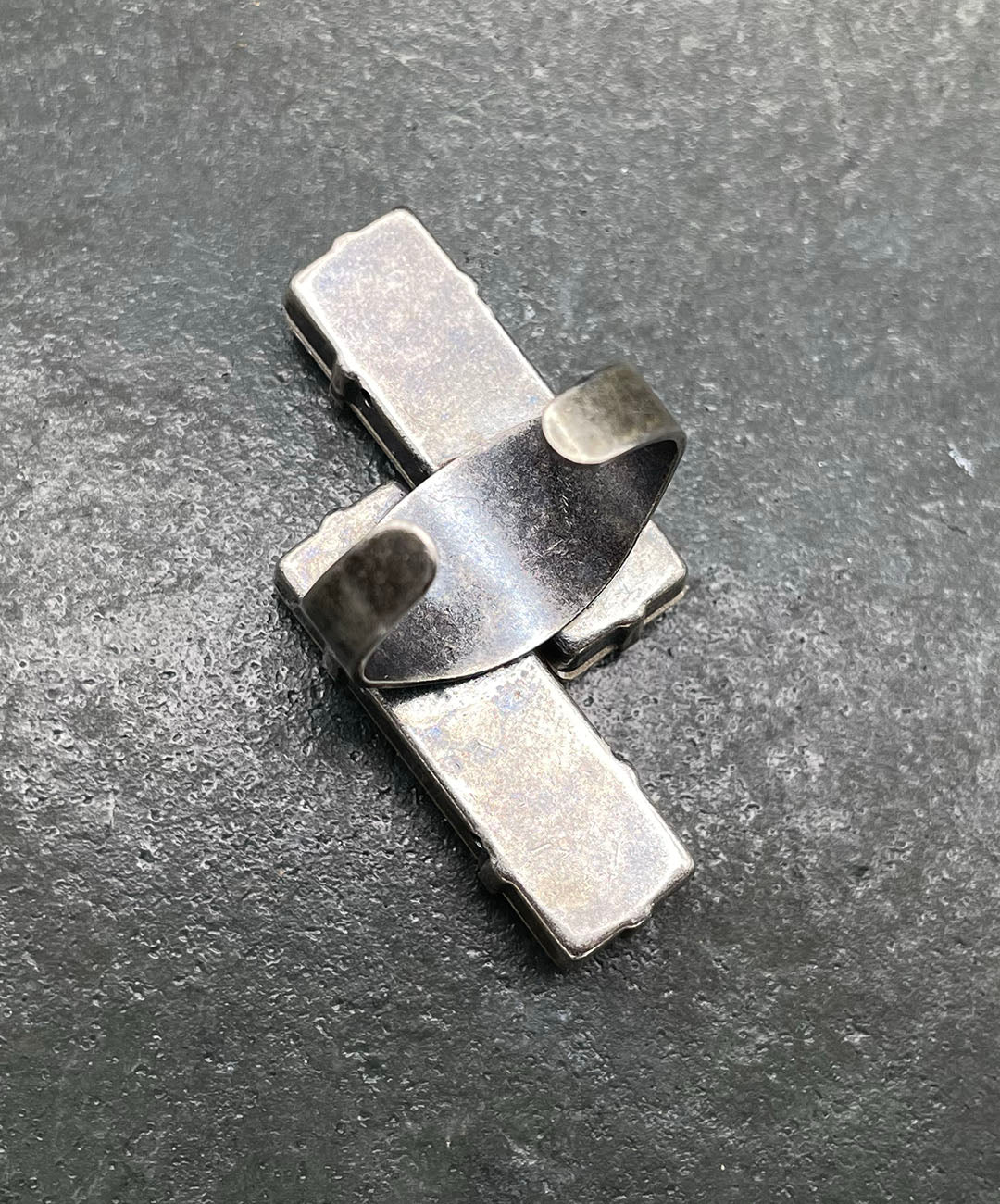 メタルは燻し加工が施されたシックなシルバートーンで、ヴィンテージムードが漂います。リングアームは、サイドから見てもボリュームのあるデザイン。