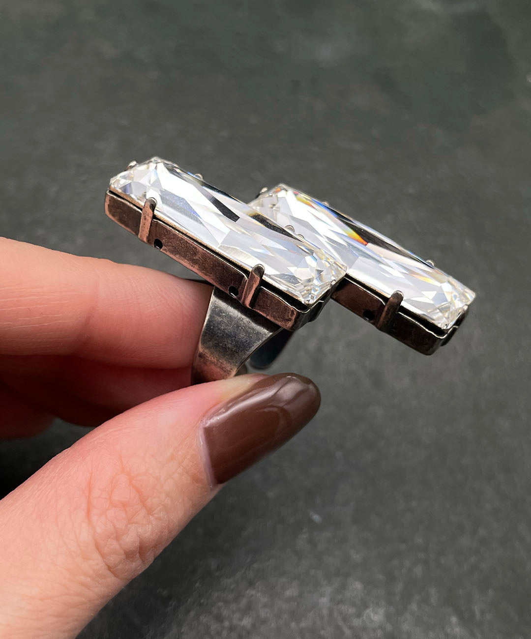 デッドストックのスワロフスキークリスタルで制作した、Elysa Jewelryオリジナルのリング。