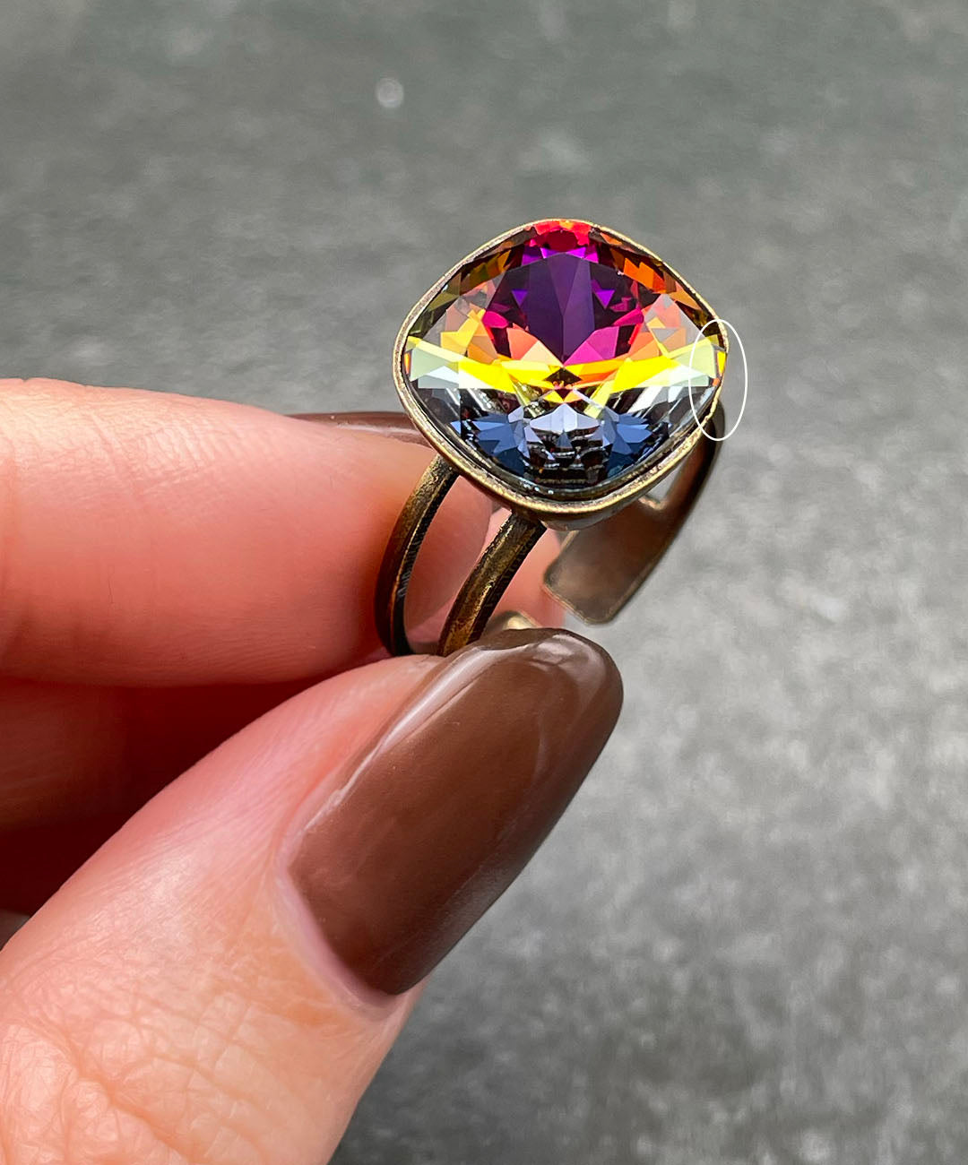 デッドストックのスワロフスキークリスタルで制作した、Elysa Jewelryオリジナルのリング。