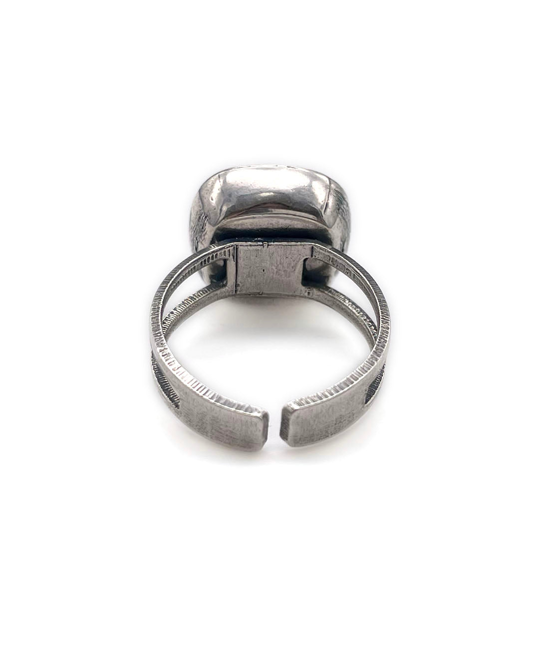 クリスタルの美しい紫を凛と引き立たせる、シルバートーンの石枠にセット。ミニマルでモダンなデザインでありながら、さりげなく主張するリングアームのデザインもポイントです。