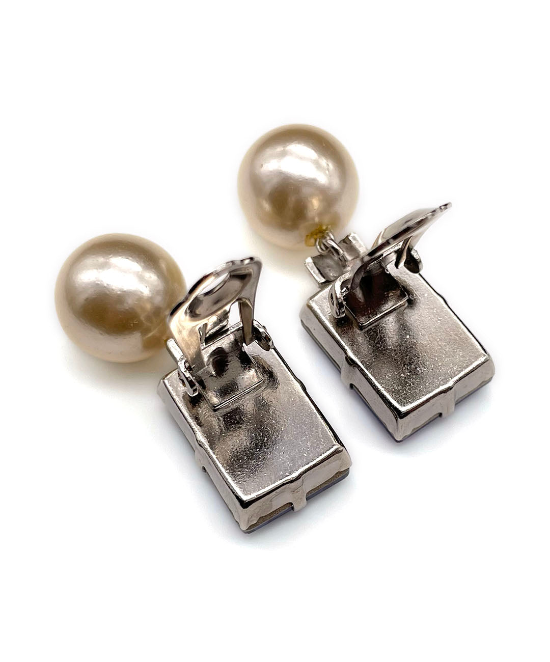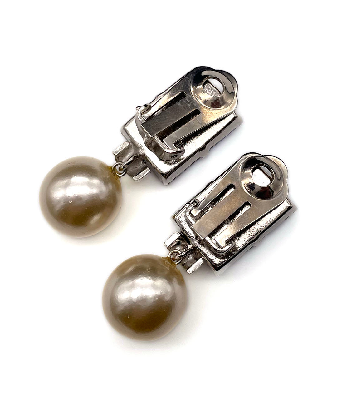 パールに一部ごく微細な傷、イヤリングクリップに一部くすみが見られますが、全体的には良好なヴィンテージコンディションです。