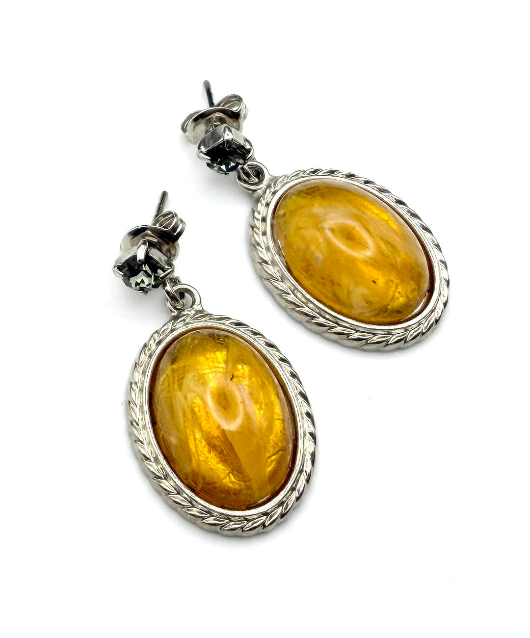 【ドイツ買付】ヴィンテージ SEIBOTH ゴールデンアンバー カボションガラス ピアス/Vintage SEIBOTH Golden Amber Cabochon Glass Post Earrings