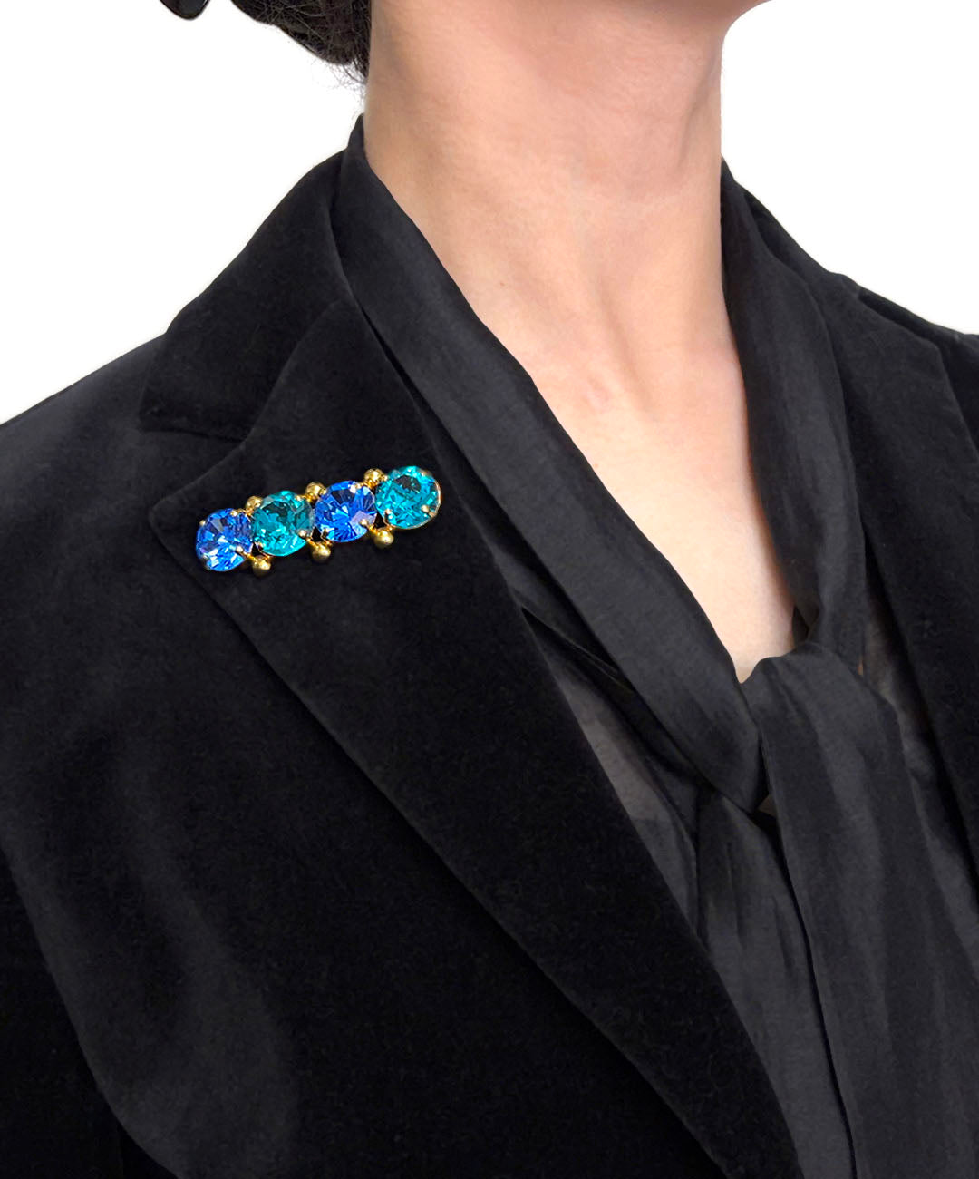 身に纏えば、非常に印象的な青がキラキラと煌めき、コーディネートを一気に華やがせてくれます。