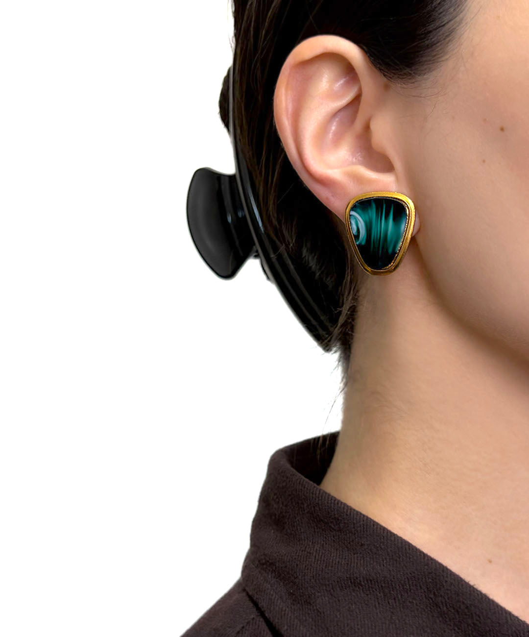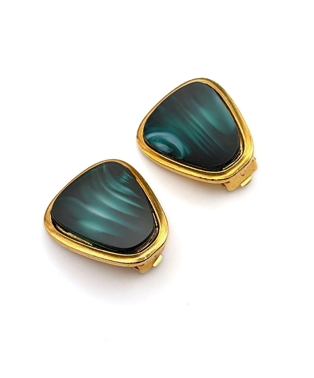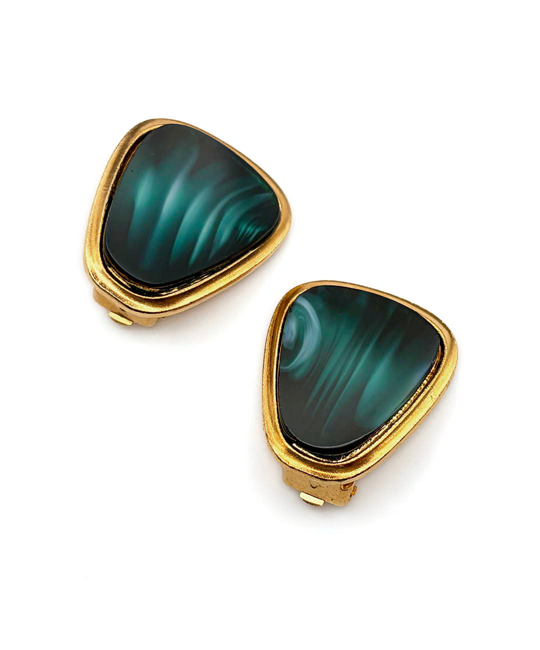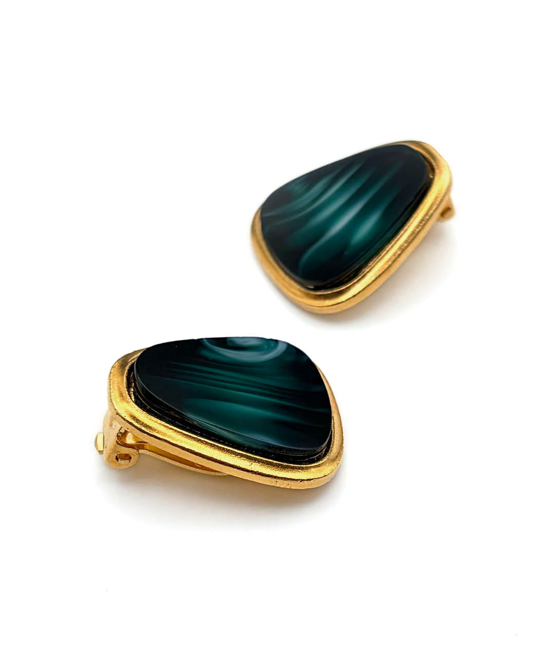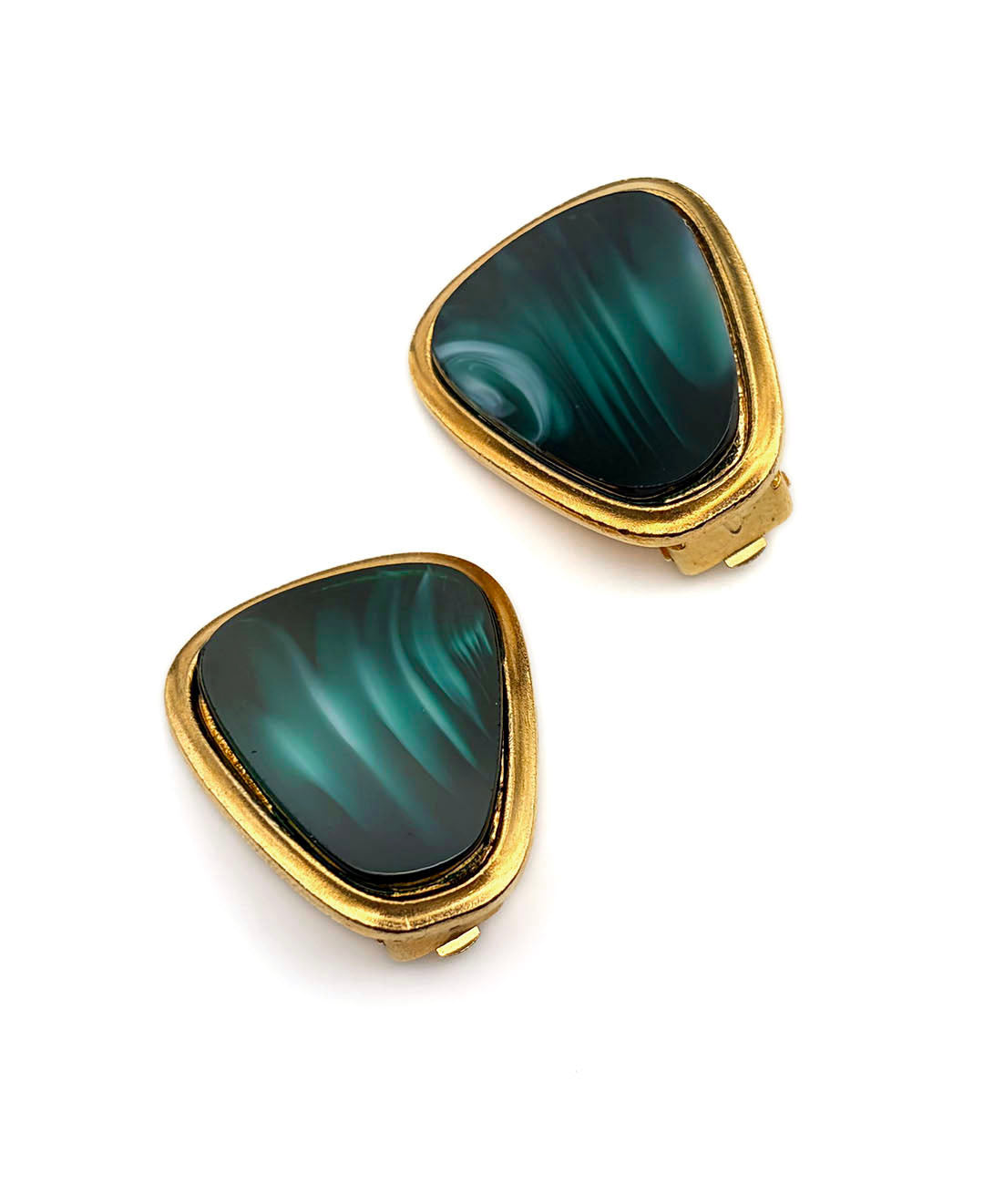 深みのあるゴールドトーンメタルのフレームに、ディープグリーンのマーブルガラスがセットされています。