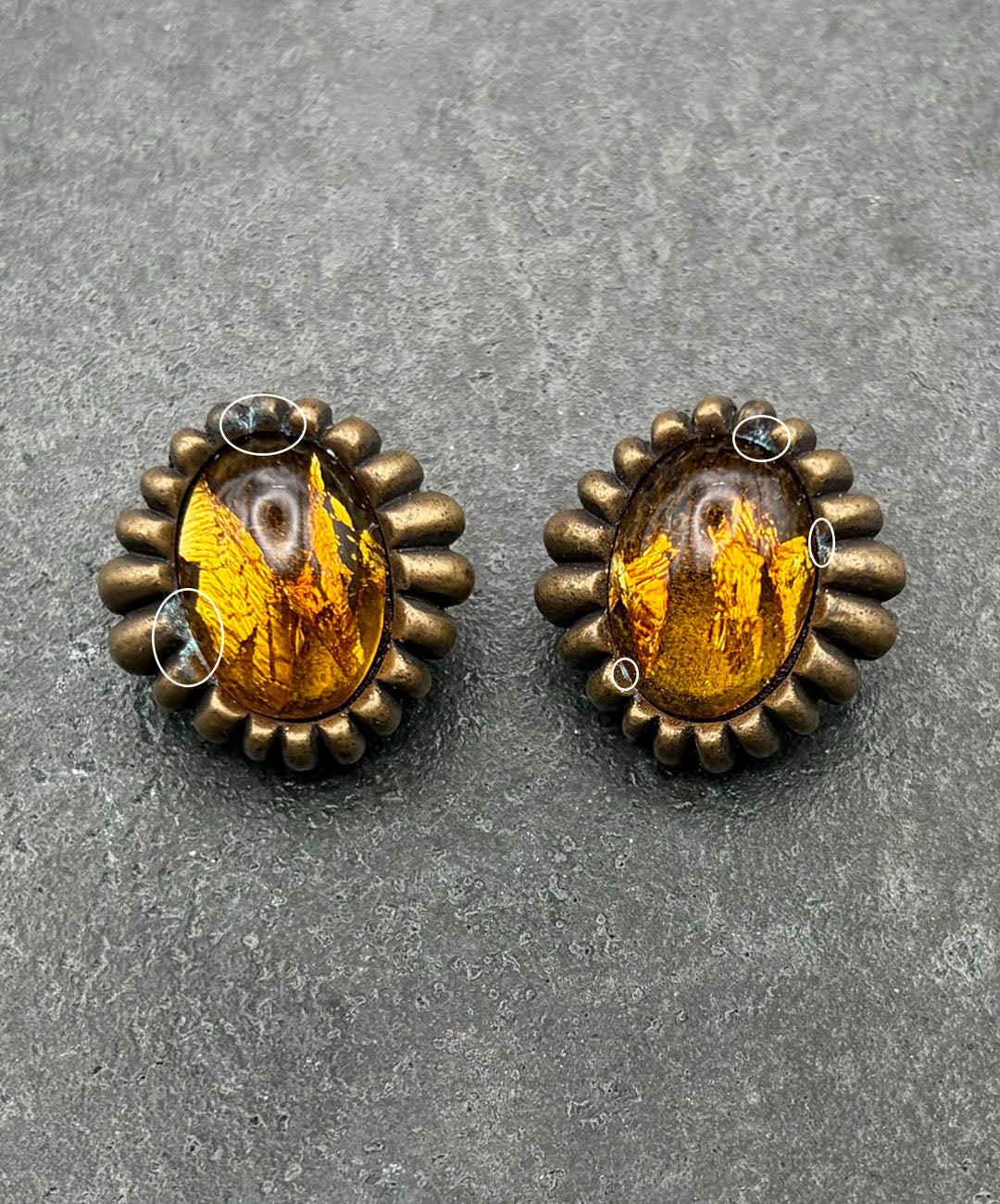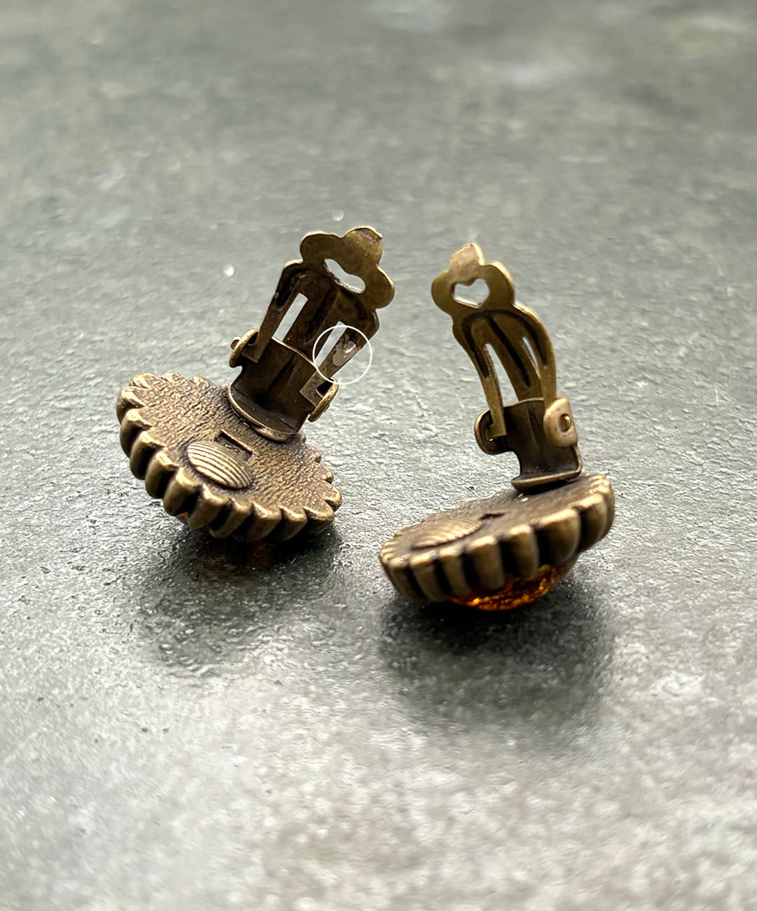 ・片方のイヤリングクリップに、一部メッキ剥がれがございます(写真9・10枚目◯部分)。