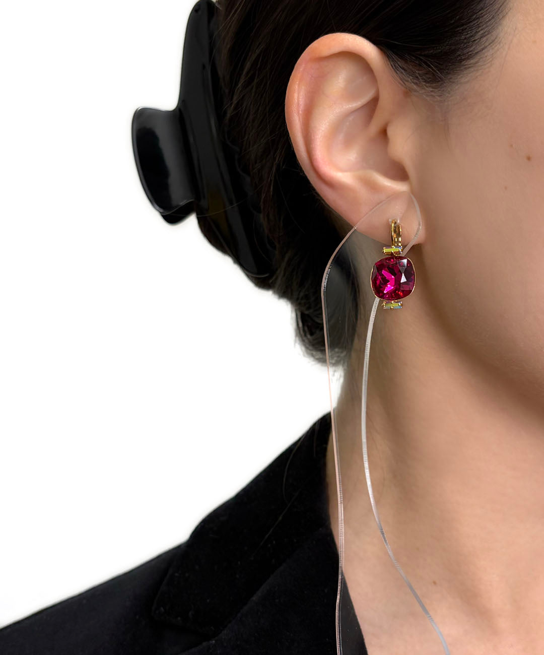 身に纏えば、印象的なマゼンタローズの輝きが、お顔周りを華やかに彩ってくれる素敵なピアスです。