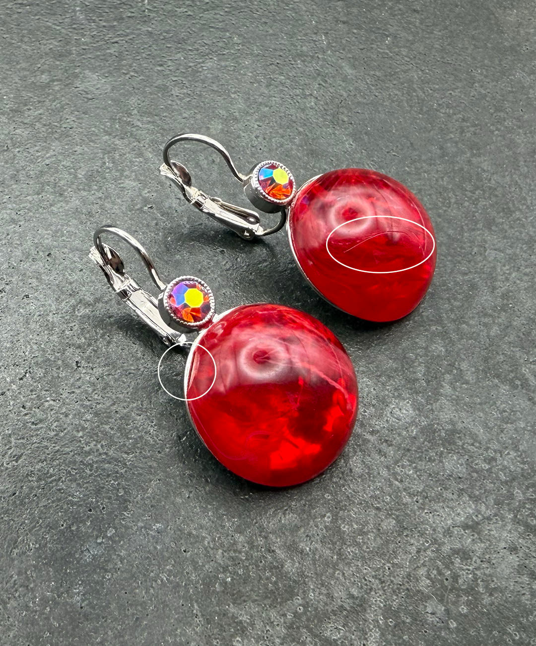 ラインストーンは、鮮やかなレッドオーロラの煌めきを放ちます。