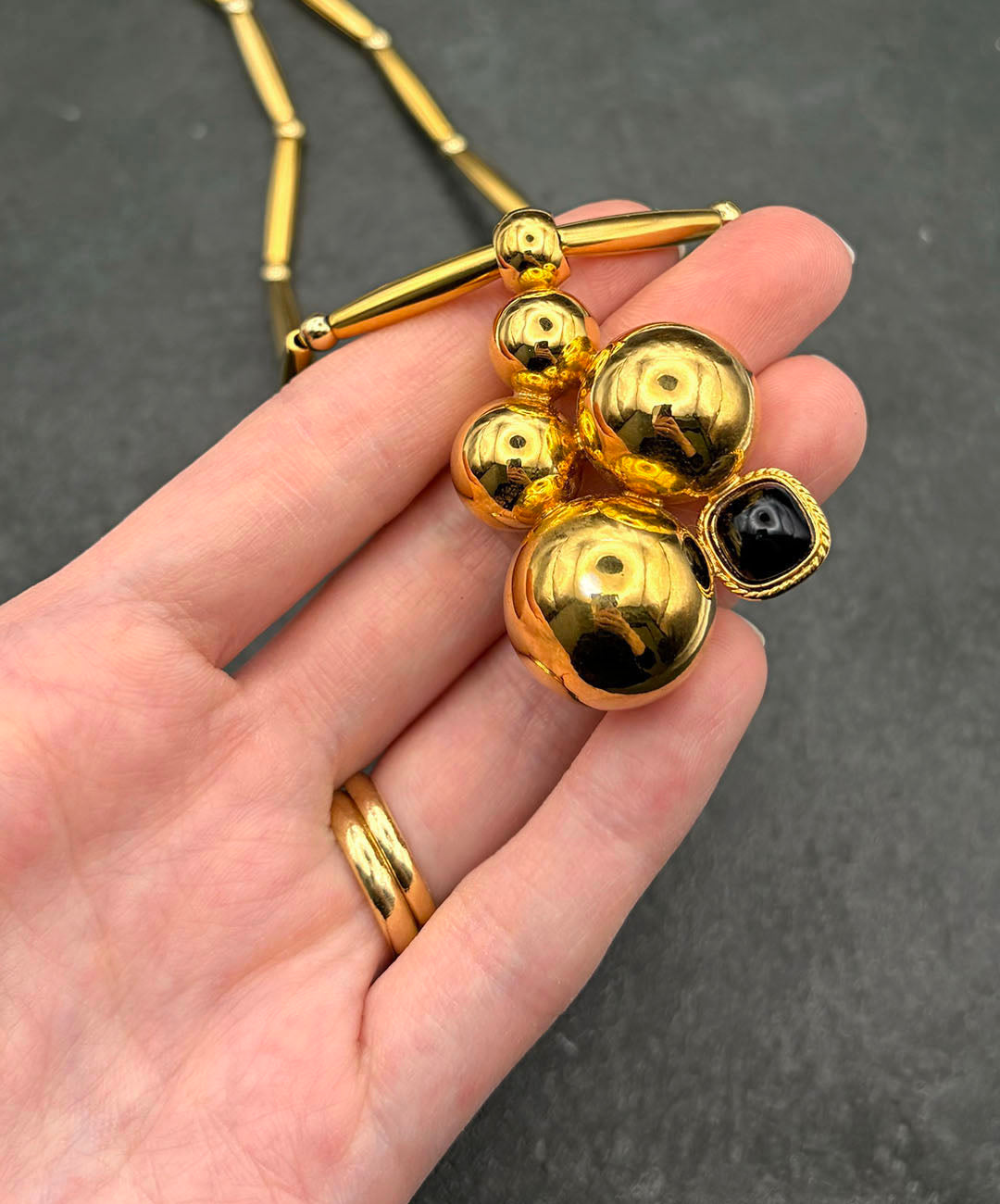 【ドイツ買付】ヴィンテージ SEIBOTH スフィア ブラックカボション ネックレス/Vintage SEIBOTH Sphere Black Cabochon Necklace
